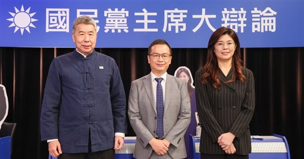 國民黨主席改選10月18日將登場,中天新聞20日下午舉辦「國民黨主席大辯論」,邀請黨主席候選人鄭麗文(右起)、羅智強、張亞中與郝龍斌參與,不過郝龍斌未出席,僅3人同台辯論。(中國時報提供)中央社 114年9月20日